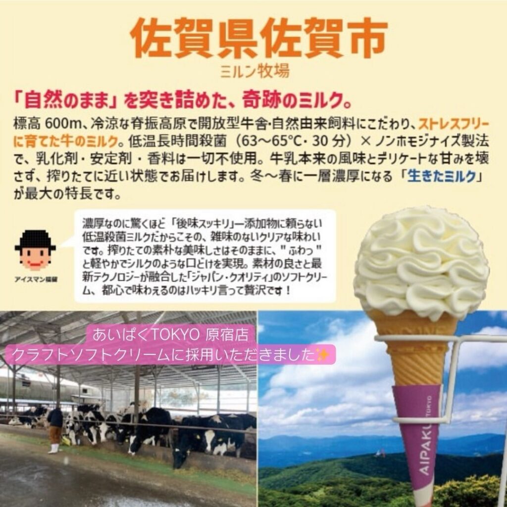 このたび、あいぱくTOKYO 原宿店のクラフトソフトクリームにミルン牧場のソフトクリームを選んでいただきました🍦🐄